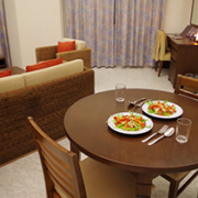 バルコニー付きの快適な広さの室内スペース。ファミリー、ご友人での滞在にオススメです。